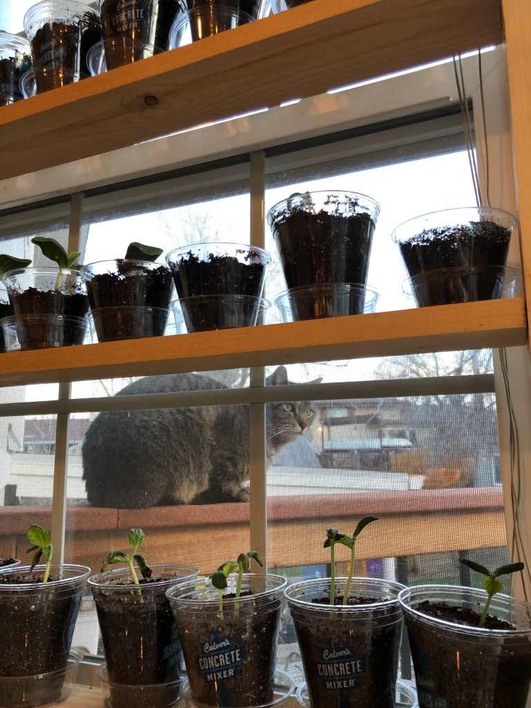 And here they are just babies– the beginning of April (don’t mind our furry neighborhood pet in the background)